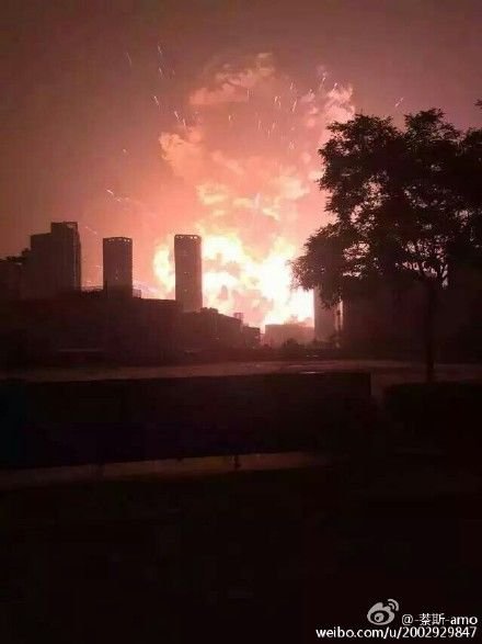 事故现场照片。图片来自网友微博 海外网8月13日电 8月12日晚11:20左右,天津港国际物流中心区域内瑞海公司所属危险品仓库发生爆炸,爆炸物品是集装箱内的易燃易爆物品。现场火光冲天,附近居民听到巨大爆炸声,有强烈震感。爆炸威力相当于21吨TNT。 截至今日中午12时,此次爆炸事故共造成44人死亡,其中包括12名消防官兵;住院治疗520人,其中重症伤员66人。 习近平对天津滨海新区危险品仓库爆炸事故作出重要指示,要求尽快控制消除火情,全力救治伤员,确保人民生命财产安全。李克强就救援和应急处置工作作出批示。 当地网友上传的视频显示,爆炸现场火光冲天,腾起蘑菇云,伴有抛射状燃烧物,河北多地有震感。有网友称腾起的蘑菇云至少有百米高,火光冲天,爆炸产生的气流非常强烈,“五公里之外的一声巨响把我直接推倒”。此外,相关企业负责人已被控制。 “幸有北疆海事局几层办公楼挡着,缓解了爆炸冲击波,不然工人伤亡可能会很严重。”河南洛阳的赵先生是启航嘉园小区建筑工地的一名木工。他所在的施工地活动板房距离事故现场有一公里多的距离,七八间活动板房里至少住着300名工人。 |