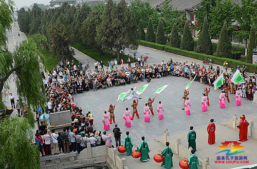 孔庙是我国历代封建王朝祭祀春秋时期思想家、政治家、教育家孔子的庙宇 ,位于曲阜城中央。它是一组具有东方建筑特色、规模宏大,气势雄伟的古代建筑群。